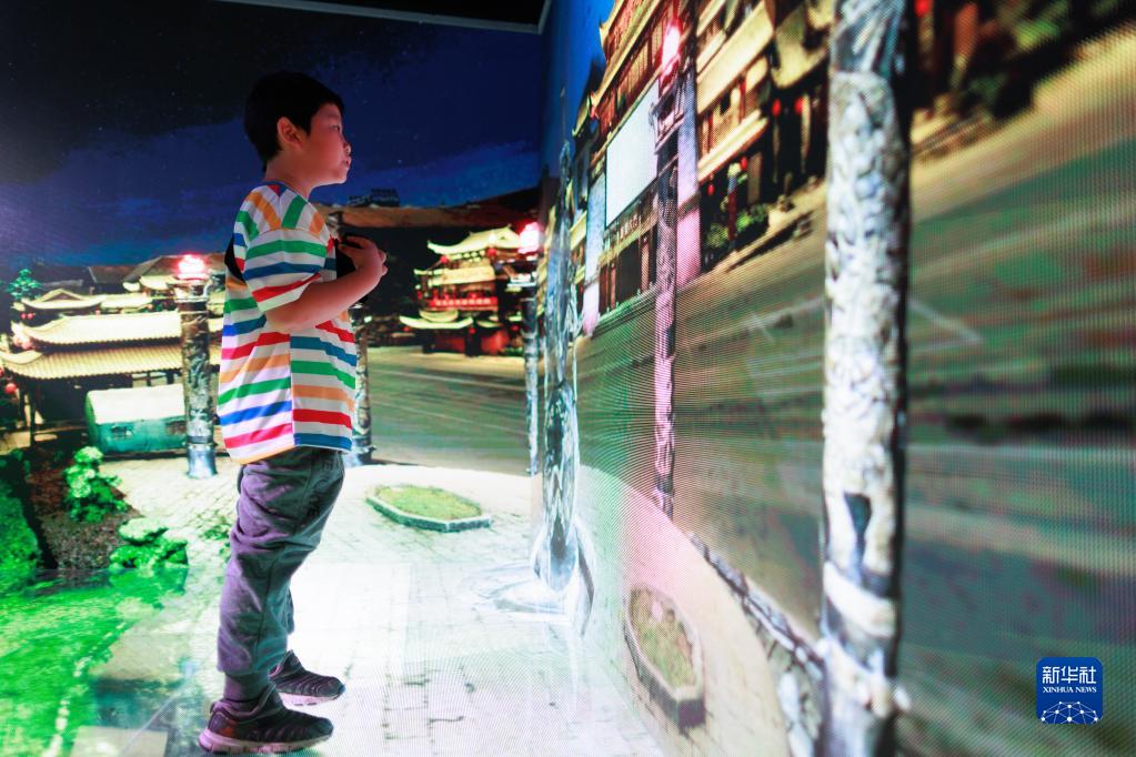 5月26日,一名小朋友在“數博會”上參觀數字化虛擬景觀。