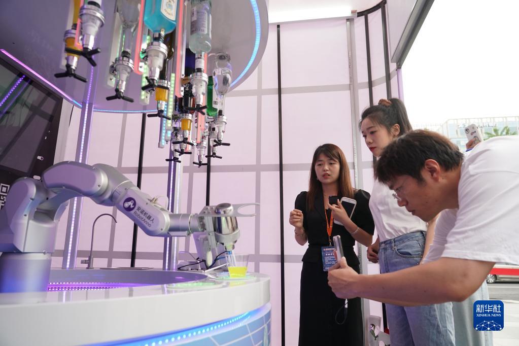 5月27日,在硬科技嘉年華現場,參觀者拍攝機器人調酒展示。