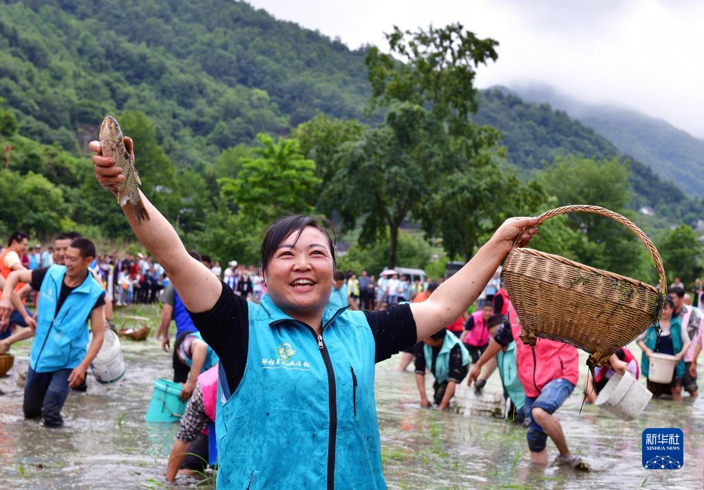 當日,湖北省宜昌市秭歸縣九畹溪鎮舉辦農民趣味運動會,來自各村的200多名農民進行拔河、挑水、插秧、摸魚等趣味競技比賽,樂享農耕文化的快樂。