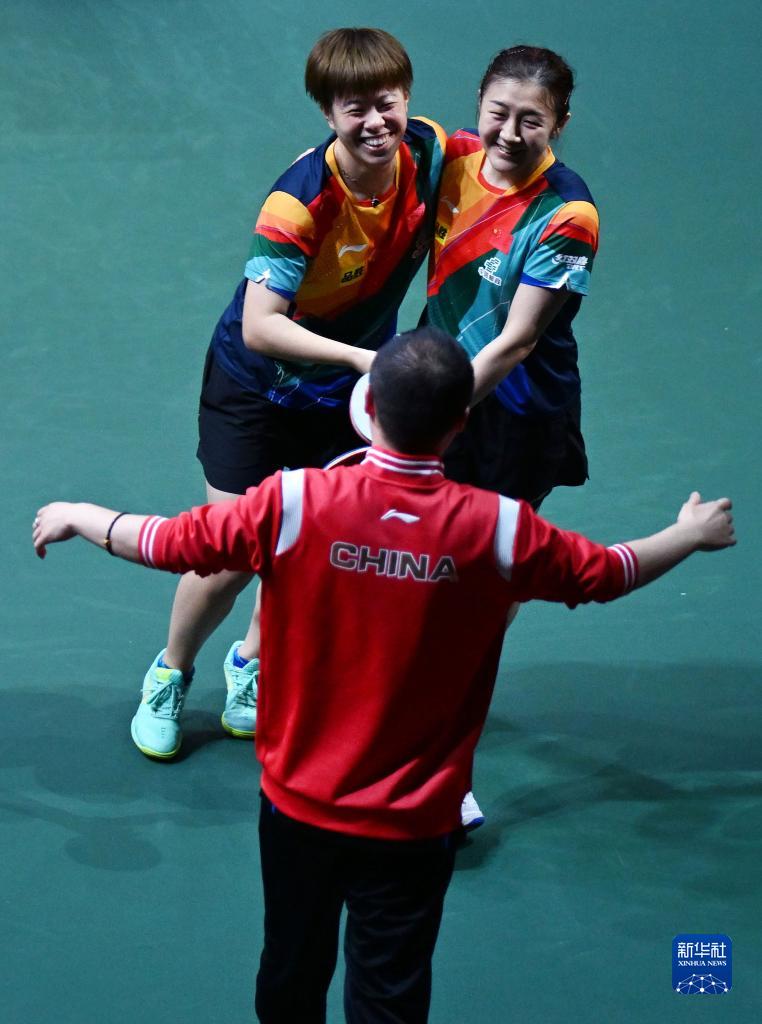 當日,在南非德班進行的2023年世界乒乓球錦標賽女子雙打決賽中,中國選手陳夢/王藝迪以3比0戰勝韓國選手田志希/申裕斌,奪得冠軍。