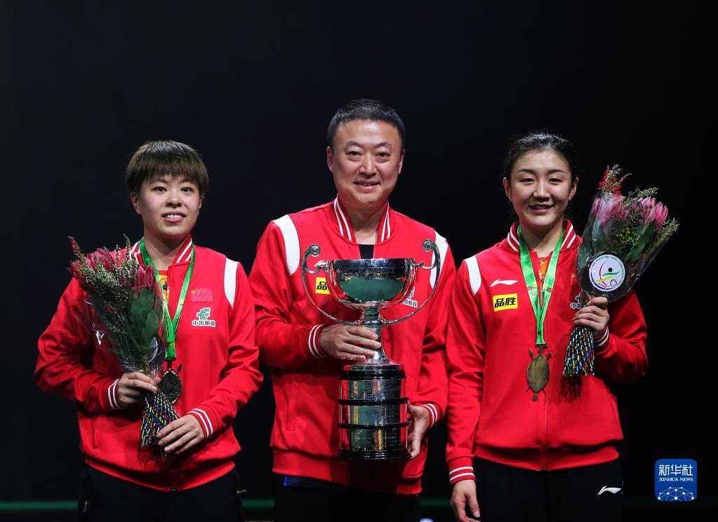 當日,2023年世界乒乓球錦標賽女雙頒獎儀式在南非德班舉行。在女雙決賽中,中國組合陳夢/王藝迪以3比0戰勝韓國組合田志希/申裕斌,奪得冠軍。