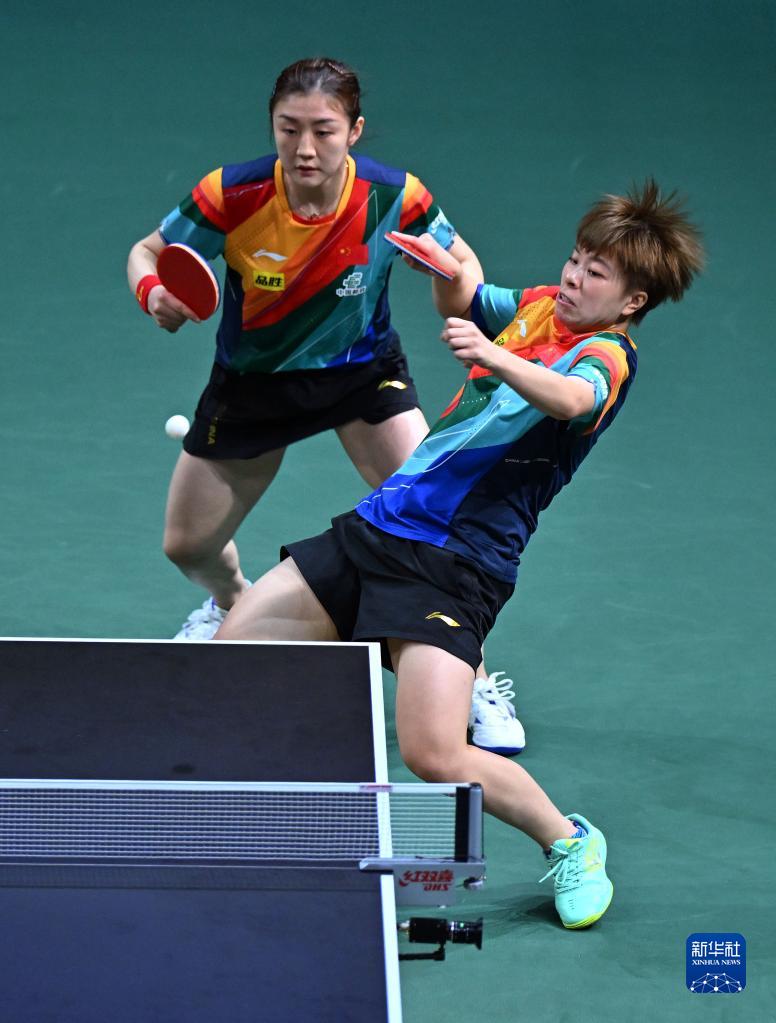 當日,在南非德班進行的2023年世界乒乓球錦標賽女子雙打決賽中,中國選手陳夢/王藝迪以3比0戰勝韓國選手田志希/申裕斌,奪得冠軍。