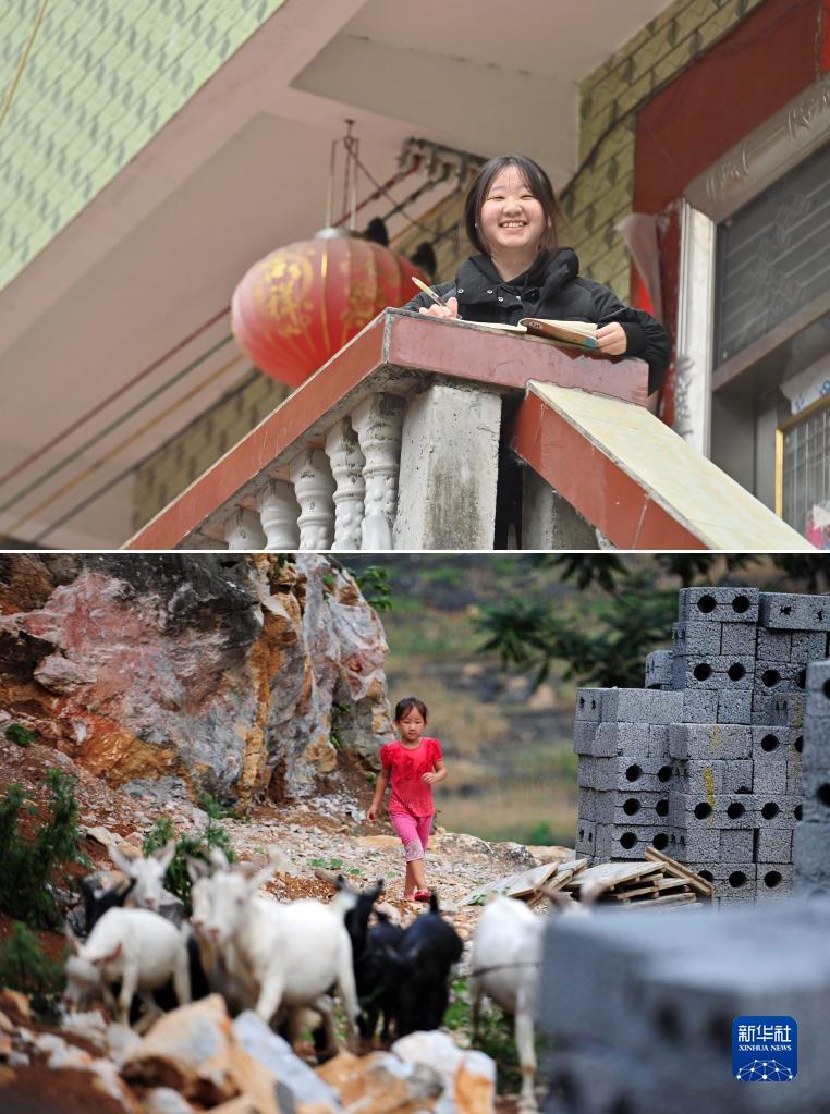 拼版照片:上圖為2023年1月16日,在大化瑤族自治縣板升鄉弄勇村,正在讀初中的藍秀雪在家門口學習;下圖為2013年7月14日,5歲的藍秀雪在放羊。16歲的藍秀雪即將參加中考,希望能考上一所好高中。
