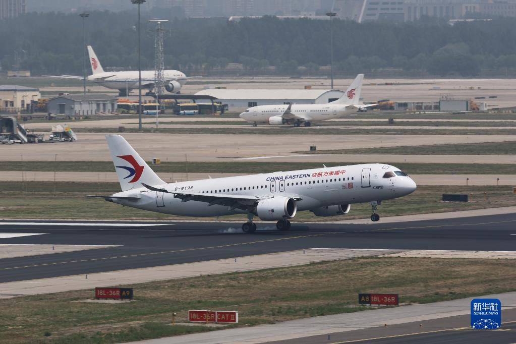 5月28日,C919首個商業航班東航MU9191安全抵達北京首都國際機場。