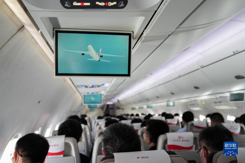 5月28日,C919首個商業航班東航MU9191在空中飛行。