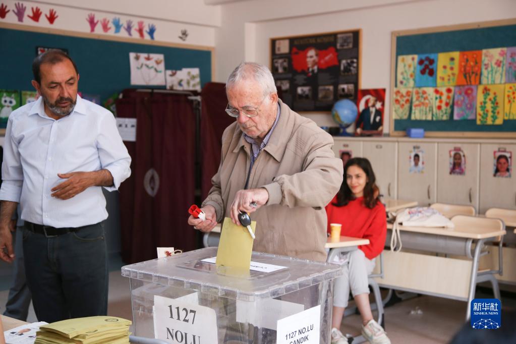 5月28日,一名男子在土耳其安卡拉一處投票站投票。