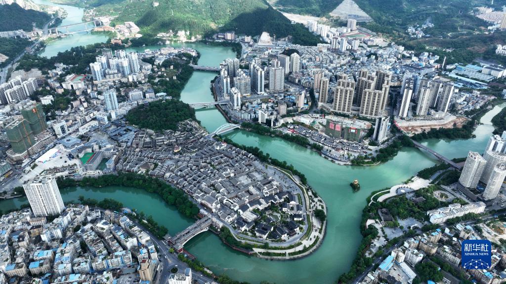 碧水環抱的貴州省銅仁市中南門古城(5月26日攝,無人機照片)。