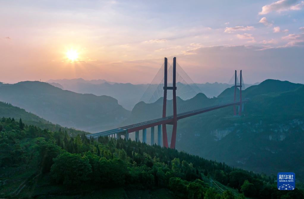 5月27日早晨在貴州省貴黔高速黔西市境內拍攝的鴨池河特大橋(無人機照片)。