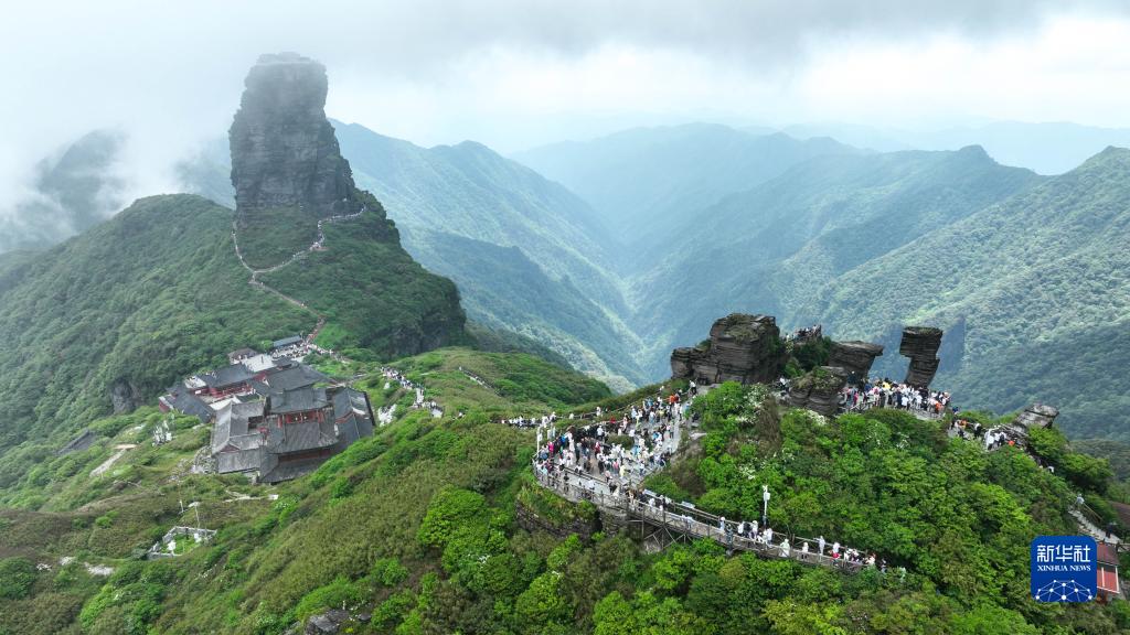 5月27日,游客在位于貴州省銅仁市的梵凈山景區游覽(無人機照片)。