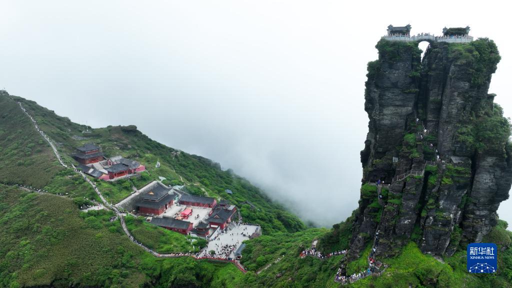 5月27日,游客在位于貴州省銅仁市的梵凈山景區游覽(無人機照片)。