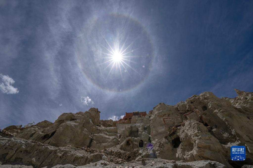 5月26日,日暈出現在皮央石窟群所在的小山上空。