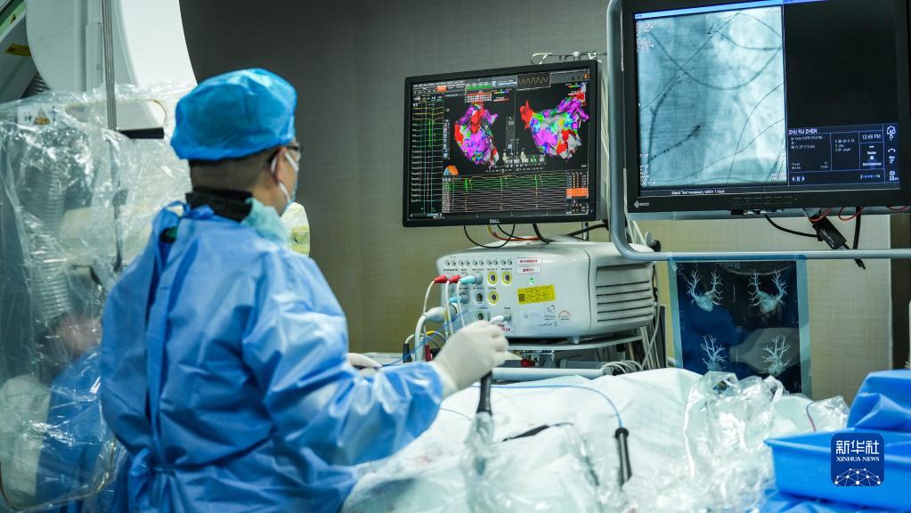 貴州省人民醫院心內科主任醫師通過心臟3D建模技術對心房顫動患者進行治療(5月25日攝)。