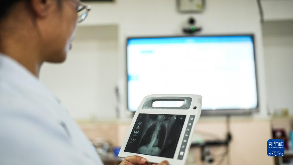 貴州省人民醫院呼吸科主任醫師通過5G+遠程醫療平臺查看龍里縣人民醫院患者的醫學影像報告(5月25日攝)。