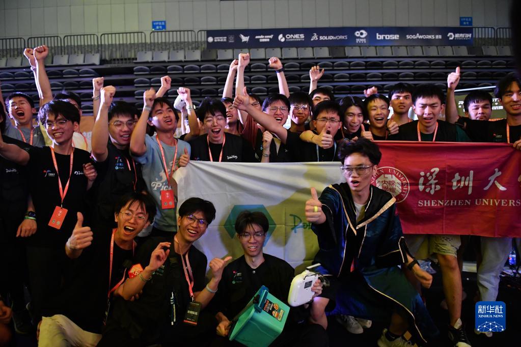 5月28日,深圳大學RobotPilots戰隊隊員在比賽結束后慶祝勝利。