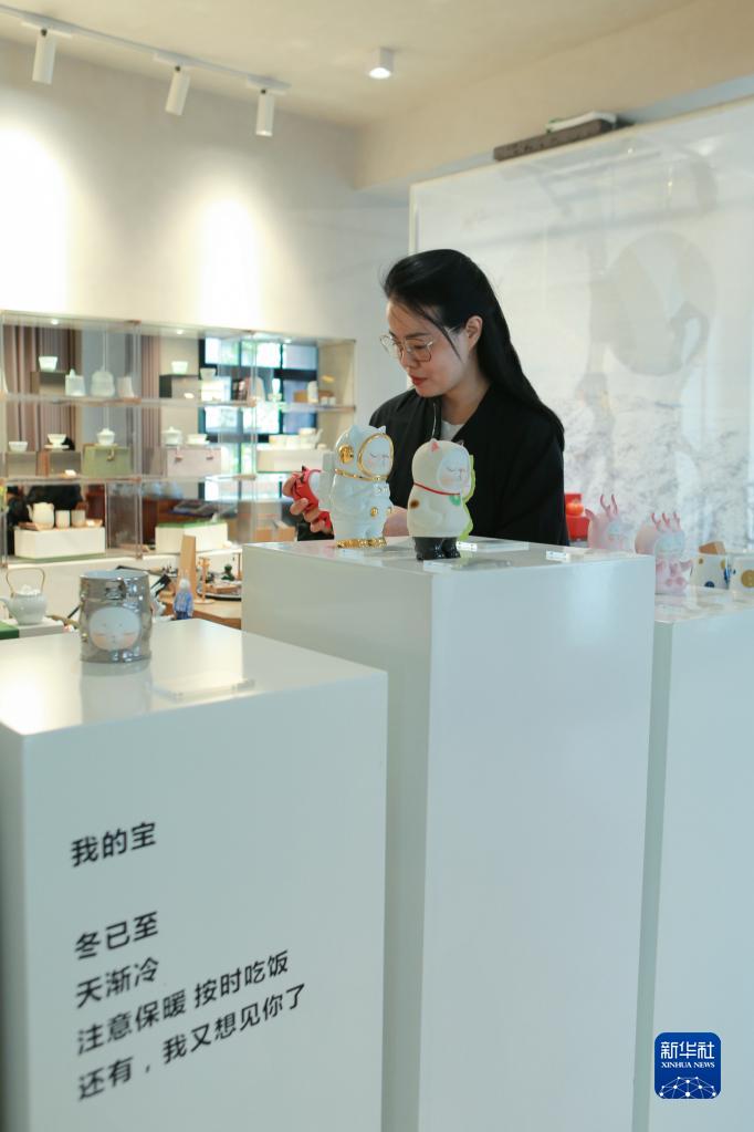 5月24日,在衢州市龍游縣溪口未來鄉村黃泥山片區,創業者吳琴芬在文創工作室內查看作品。新華社記者 鄭衛 攝
