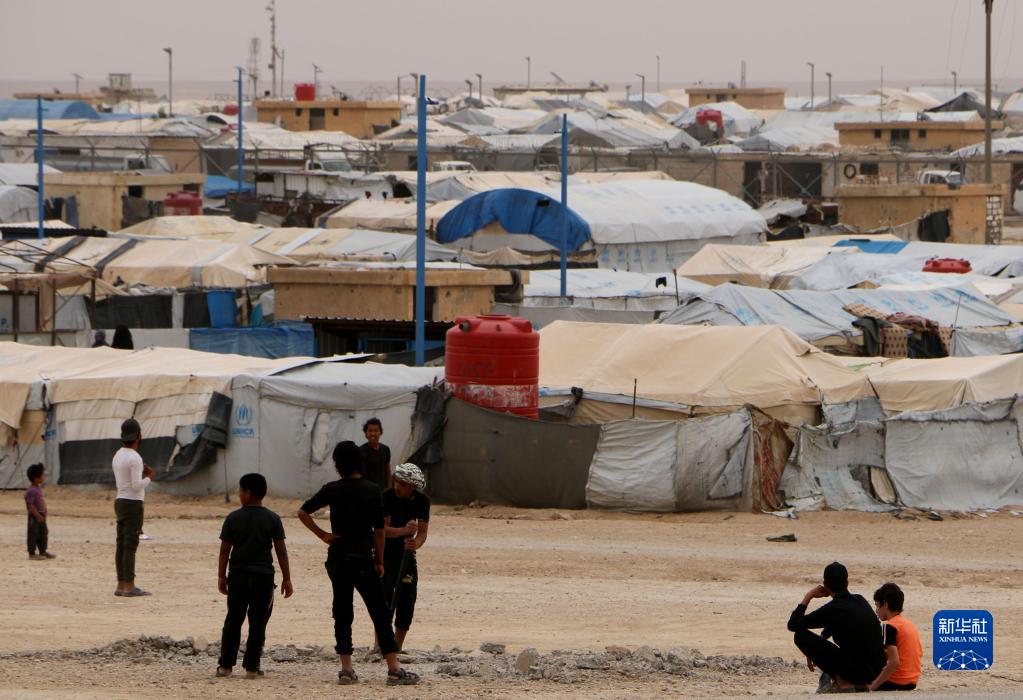 這是5月28日在敘利亞哈塞克省拍攝的霍爾難民營內的人們。
