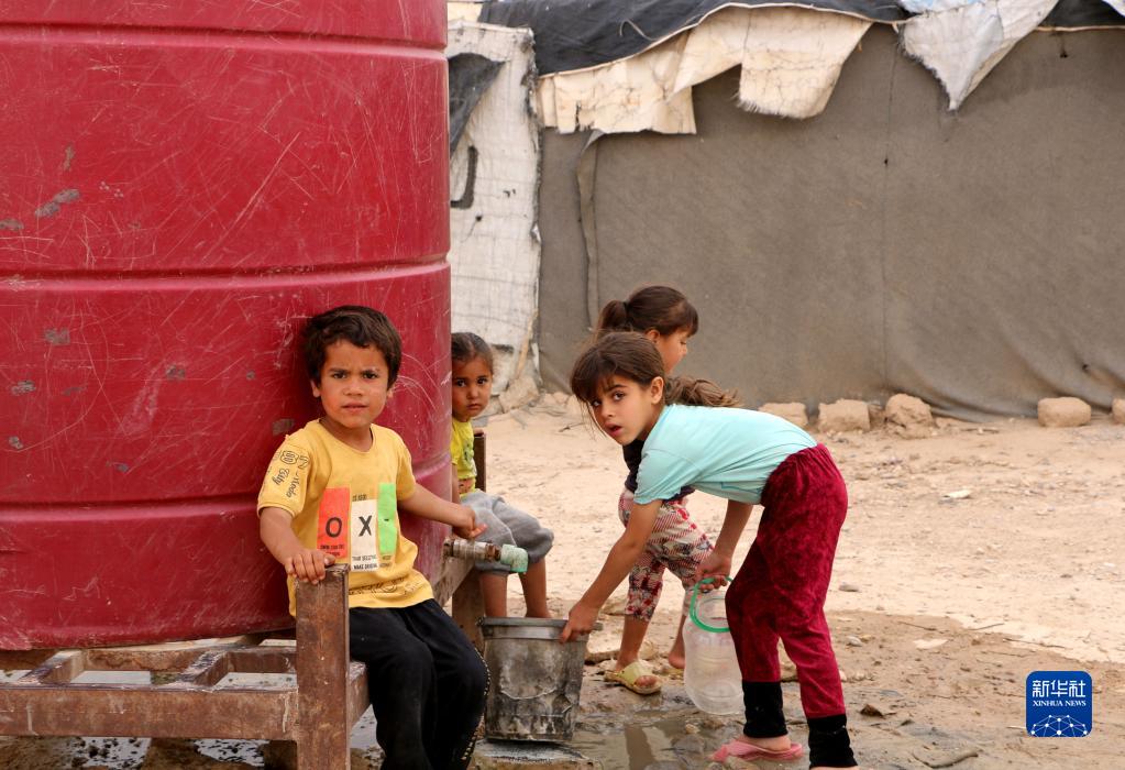 這是5月28日在敘利亞哈塞克省拍攝的霍爾難民營內的孩子們。