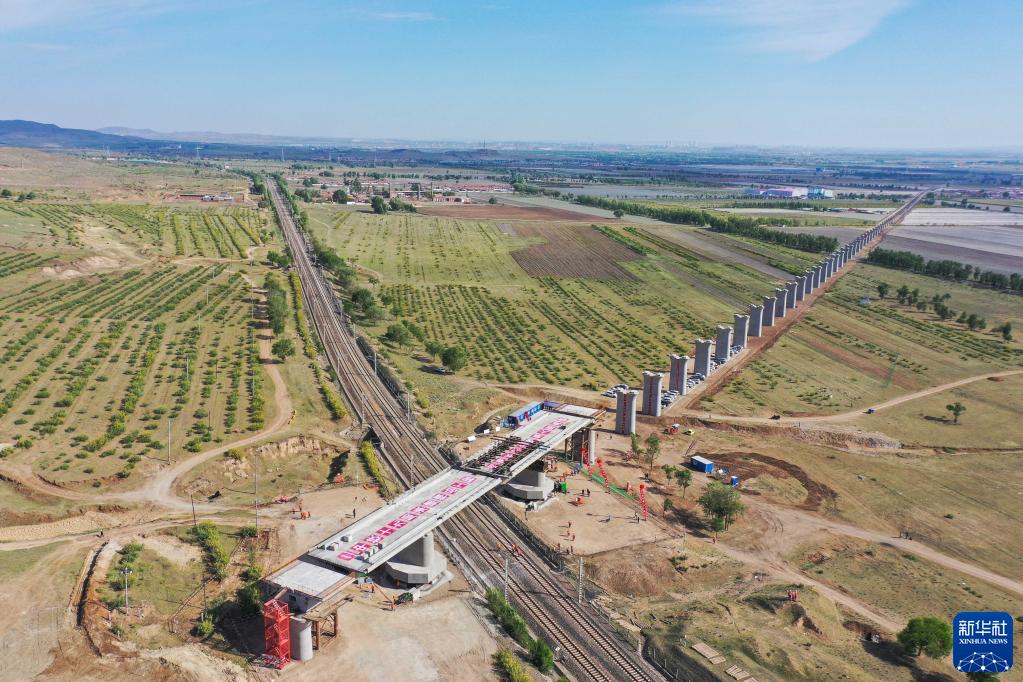 5月29日,集大原高鐵跨京包鐵路連續梁轉體完成(無人機照片)。