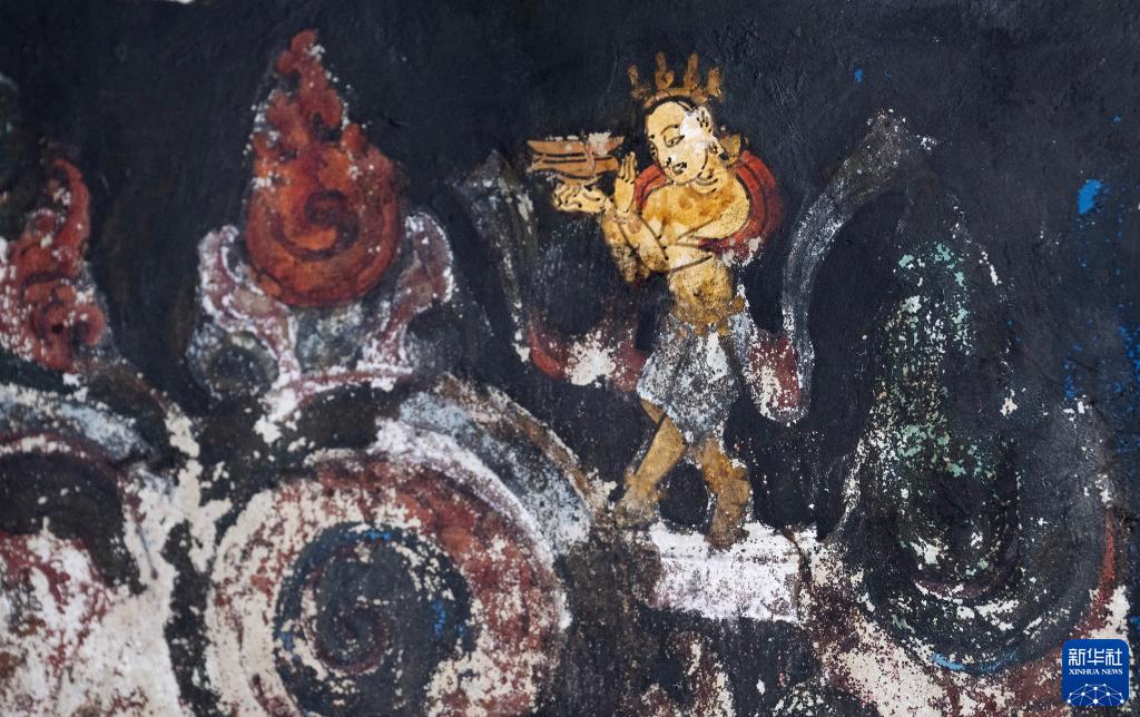 這是5月26日拍攝的皮央石窟壁畫中的人物造型。
