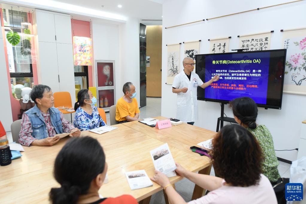 5月29日,在愛山街道利民社區,骨科專家給老年居民做關節健康講座。