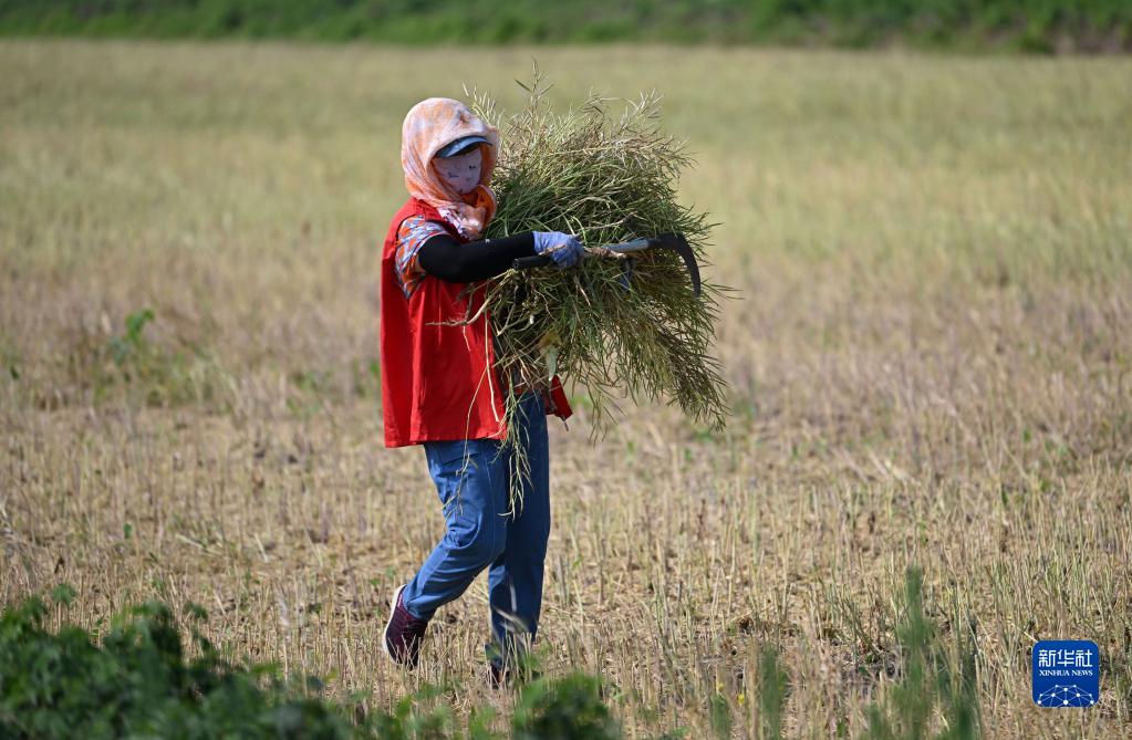 5月29日,農戶在油菜田里勞作。