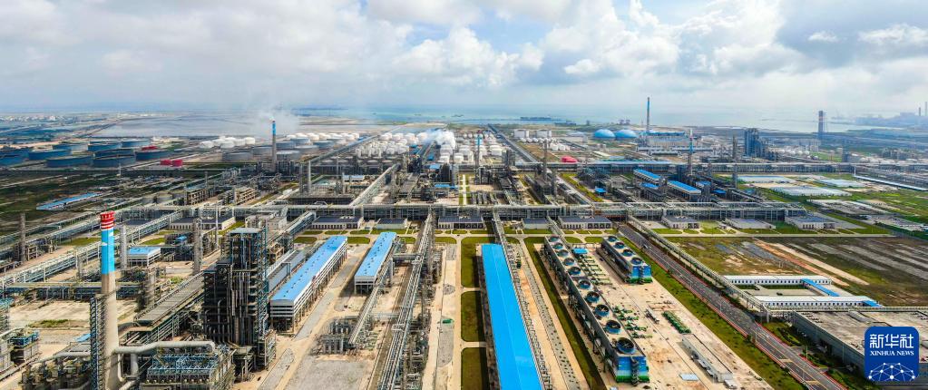 廣東省湛江市東海島拍攝的中科煉化廠區(5月25日攝,無人機照片)。聚集了寶鋼湛江鋼鐵、中科煉化和巴斯夫項目及一批上下游產業的湛江東海島,正迅速崛起綠色鋼鐵和綠色石化兩大千億級臨港工業集群,成為廣東最大的臨港工業島。