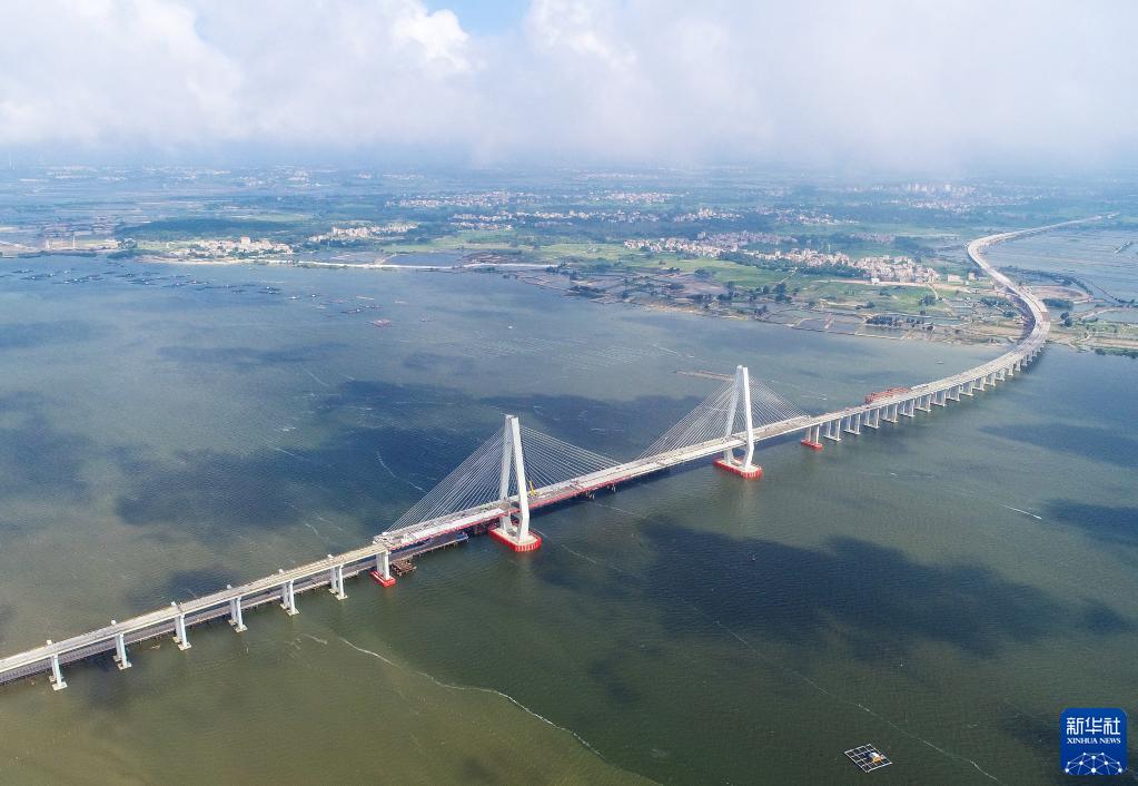 建設中的湛江鷺洲大橋(5月25日攝,無人機照片)。