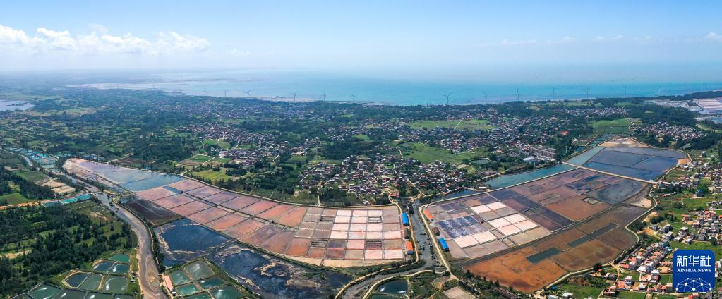 中國大陸最南端“南極村”的鹽田(5月28日攝,無人機全景照片)。