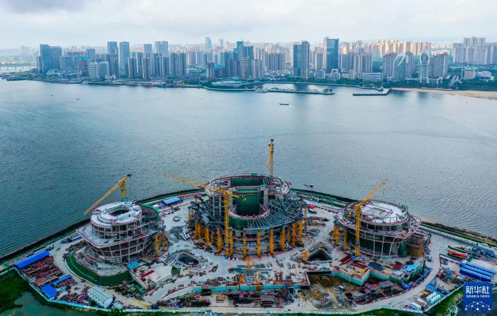 中建深裝承建的湛江市文化中心三館開始安裝幕墻,建成后這里將成為湛江文化新地標(5月26日攝,無人機照片)。