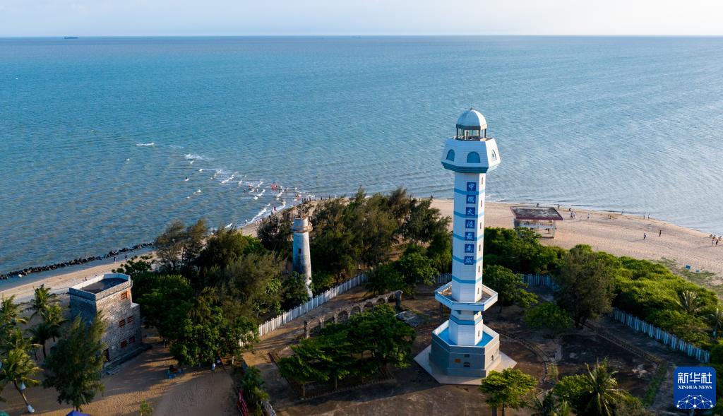 位于廣東省湛江市徐聞縣角尾鄉“南極村”拍攝的中國大陸最南端燈樓角(5月27日攝,無人機照片)。
