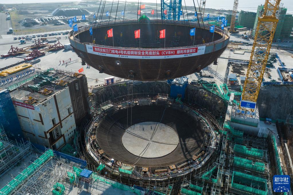 5月29日,在浙江省臺州市三門縣,三門核電二期工程4號機組核島鋼制安全殼底封頭順利吊裝就位。這是4號機組核島反應堆廠房吊裝的首個大型模塊,標志著該廠房主體結構施工開始。三門核電二期工程4號機組于3月22日開工,整個二期工程建成投產后,一、二期裝機總容量將達到500萬千瓦,年發電量預計可達到400億千瓦時。