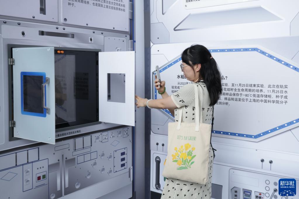 5月29日,參觀者在中國科技館“稻谷飄香,禾下追夢——中國攻克雜交水稻難關50周年”展覽上拍照。