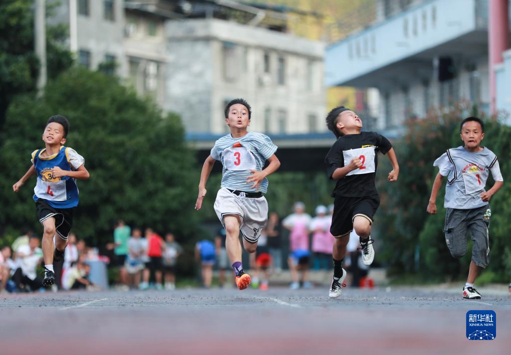 5月29日,學生在貴州省從江縣剛邊壯族鄉中心小學迎“六一”活動上參加跑步比賽。