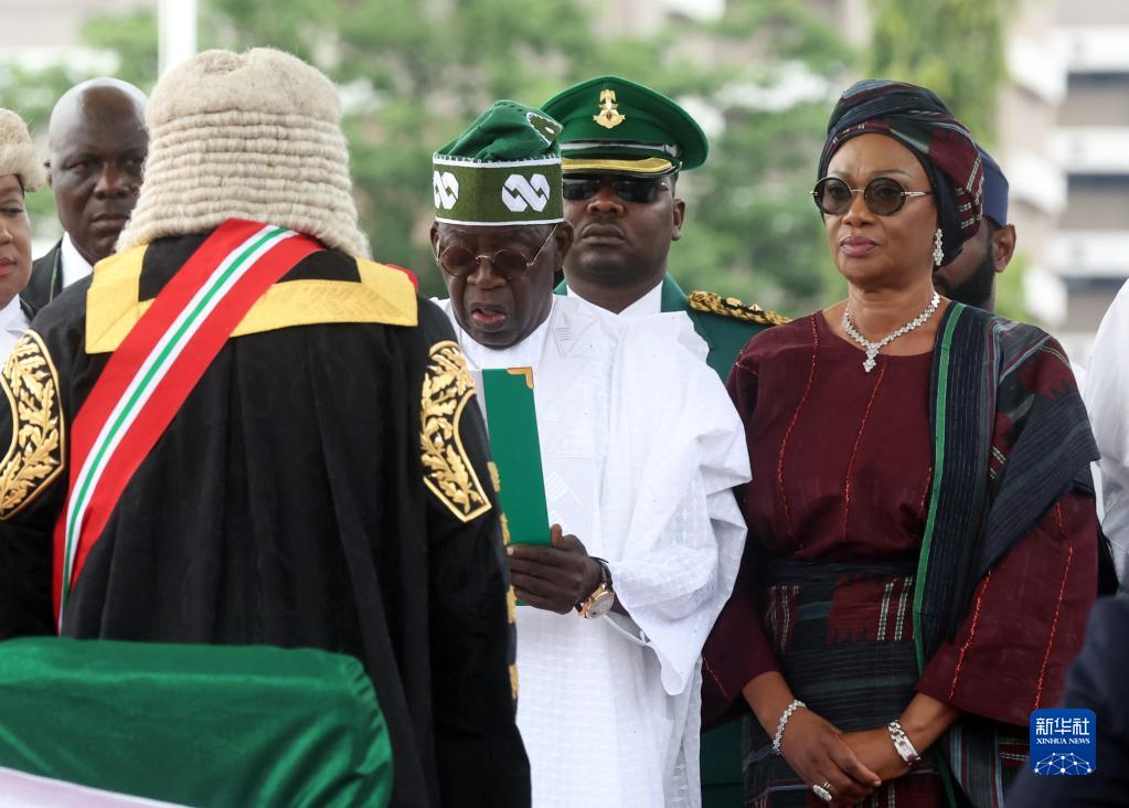 當日,尼日利亞新當選總統博拉·提努布在阿布賈宣誓就職。新華社發(索迪克攝)