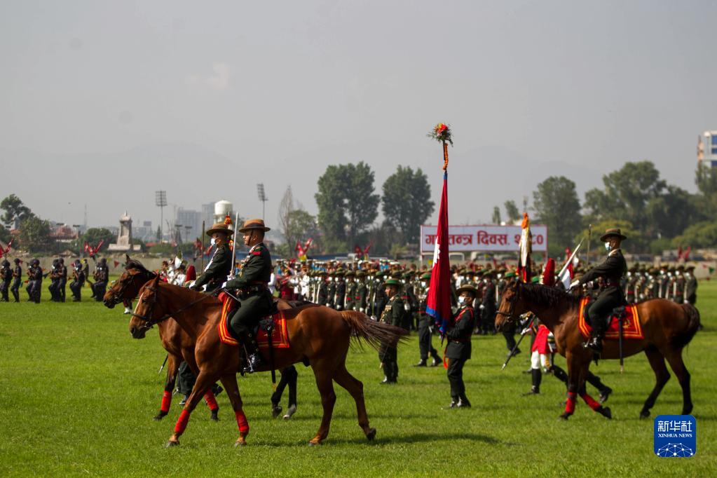 5月29日,軍人在尼泊爾加德滿都參加共和日慶?;顒?。