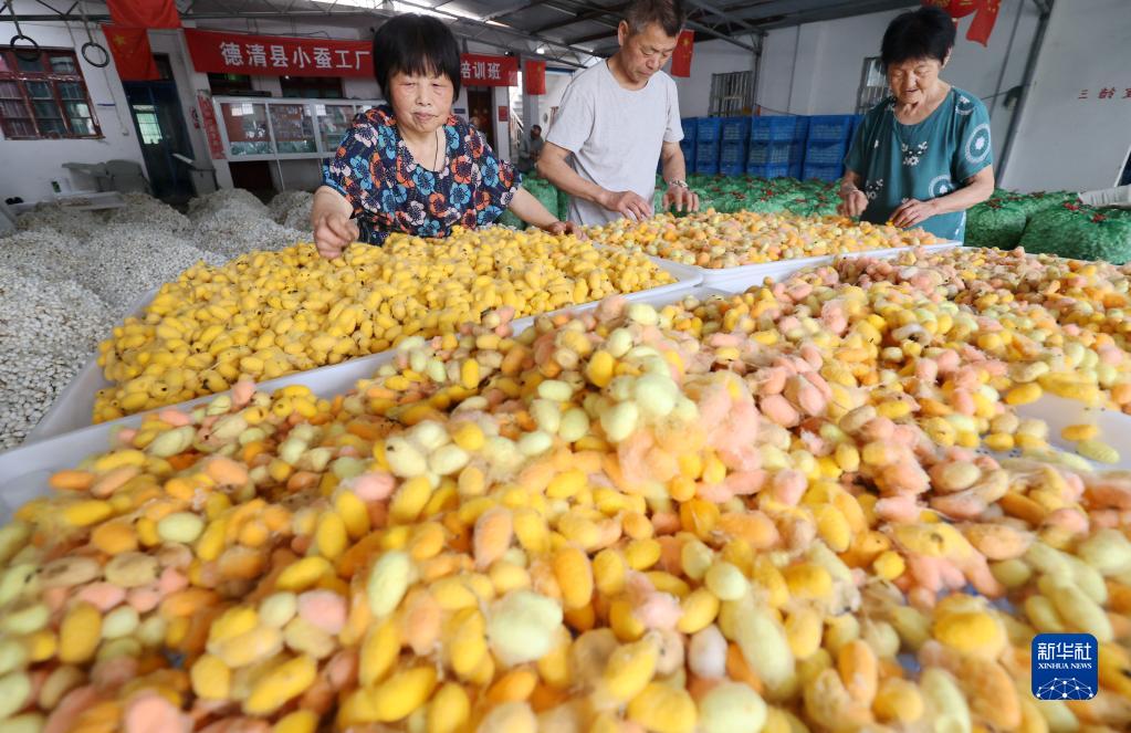 時下正是春繭收購時節,浙江省湖州市德清縣新安鎮的蠶農搶抓農時摘繭、售繭。德清縣作為杭嘉湖地區蠶桑的主要產地之一,有著悠久的蠶桑生產歷史,種桑養蠶成為農戶致富增收的有效途徑。