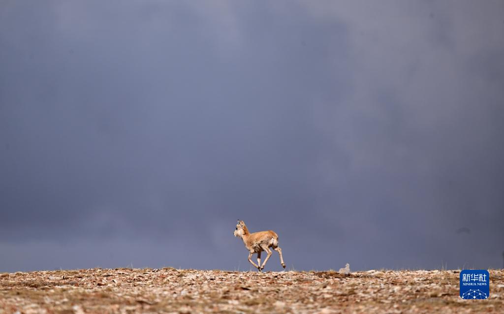5月28日,一只藏羚羊在青海省玉樹藏族自治州境內的草原上活動。
