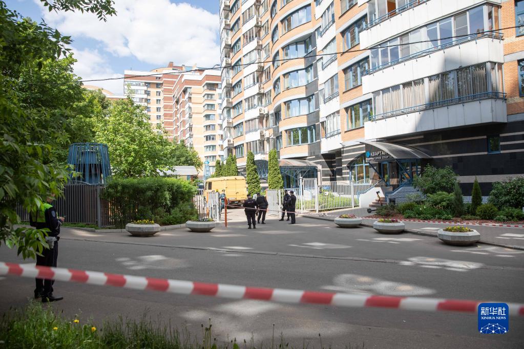 5月30日,警察在俄羅斯首都莫斯科的樓房遭襲現場警戒。