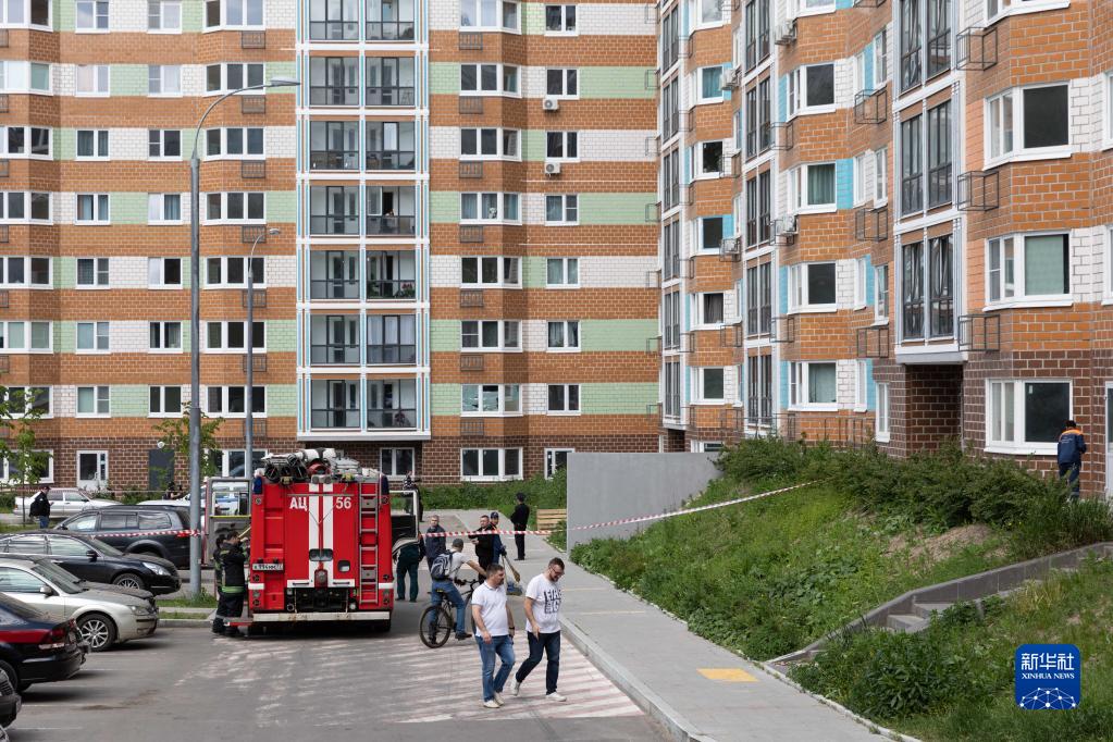 5月30日,消防員在俄羅斯首都莫斯科的樓房遭襲現場工作。