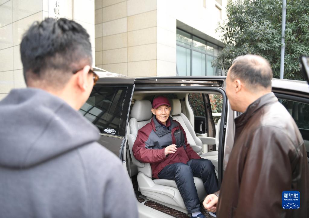 3月3日,分別時,已上車準備離開的魏昌武(中)在囑托劉艷陽(右)相關工作。