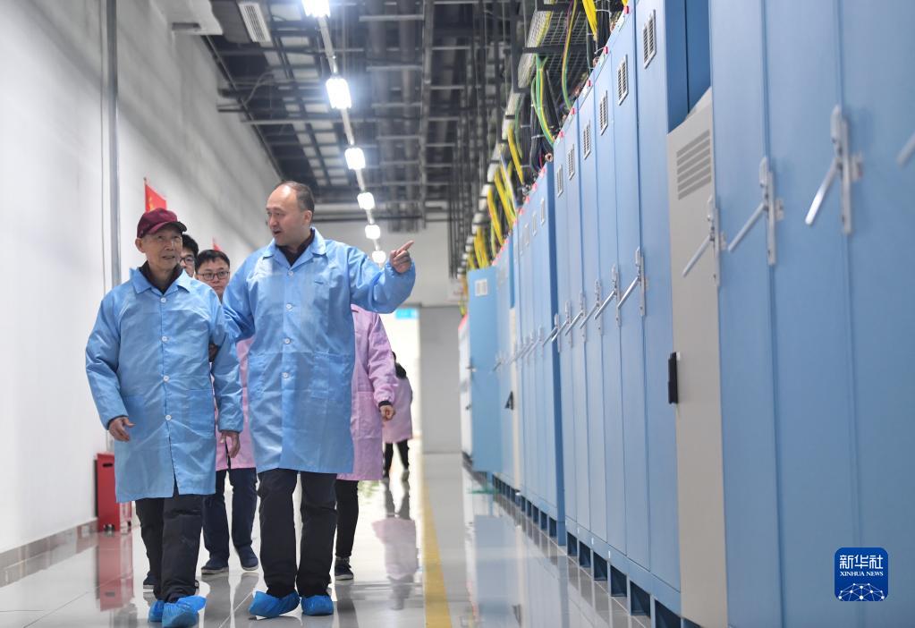 3月3日,在龍鱗系統生產基地,劉艷陽(右)在向魏昌武介紹龍鱗系統機柜生產情況。