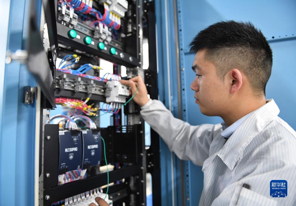 3月3日,在龍鱗系統生產基地,技術員在裝配龍鱗系統機柜。
