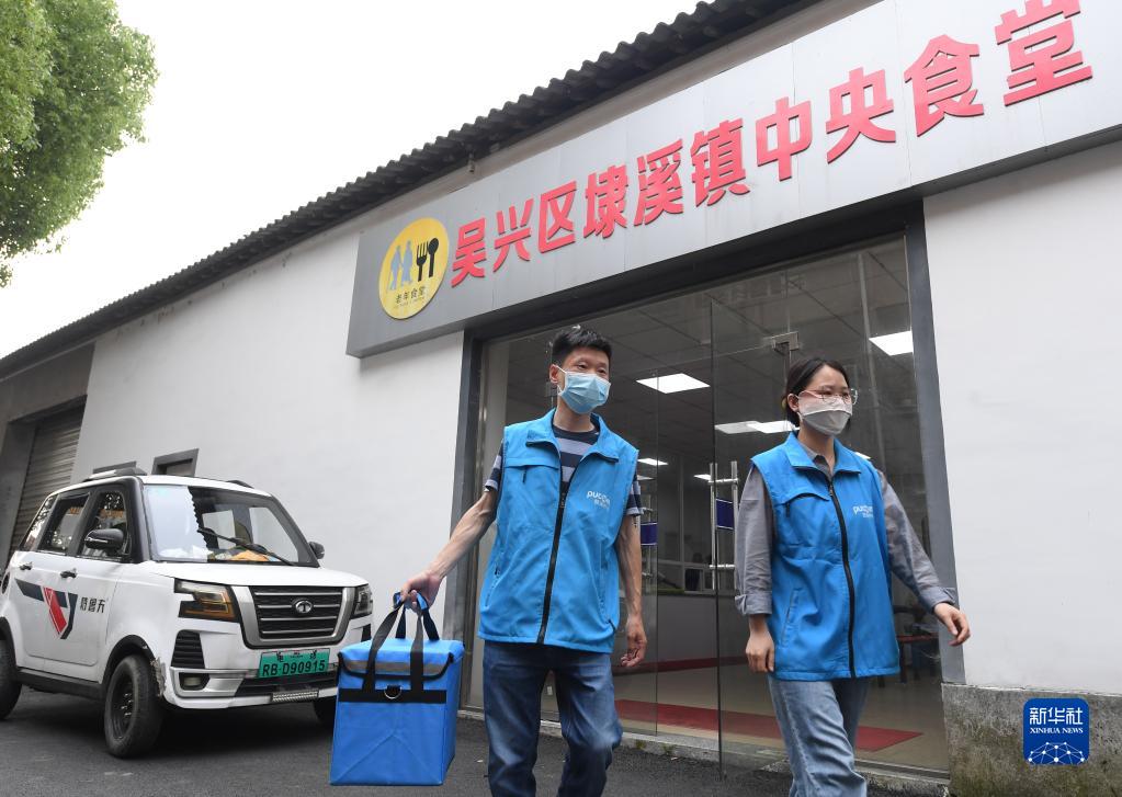 5月30日,在埭溪鎮中央食堂,助老員給住得較遠的老年人送餐。