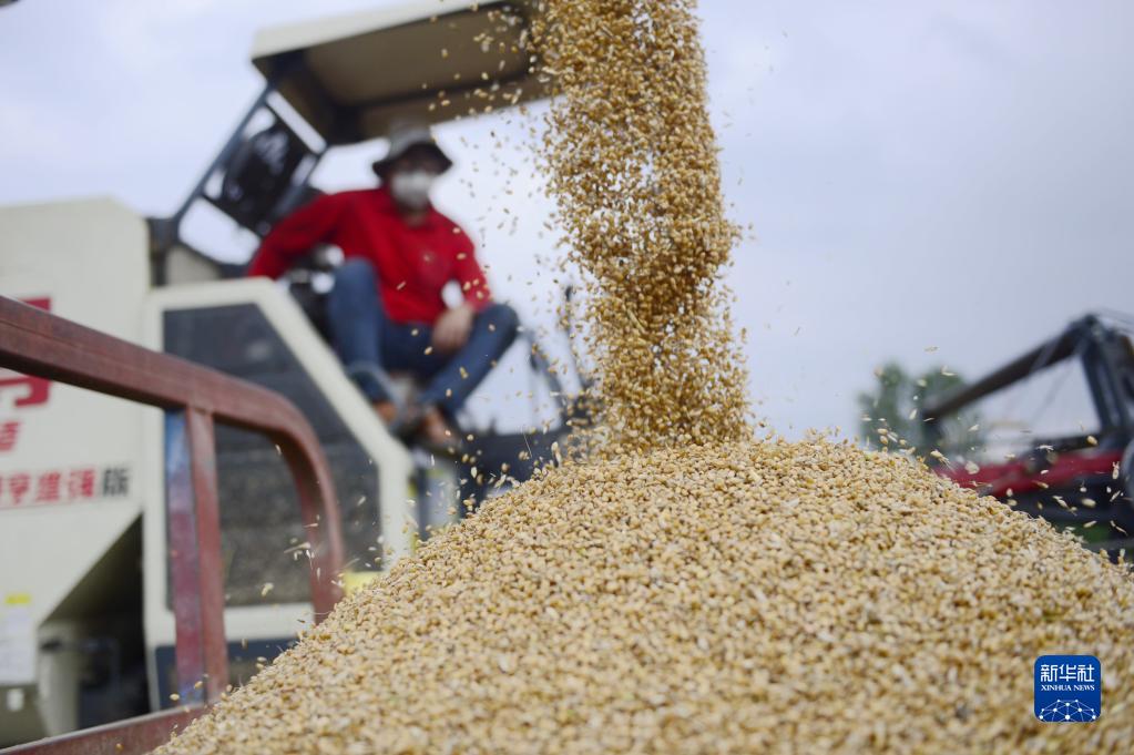 當日,河南省駐馬店市汝南縣雨歇,當地積極組織搶收已經成熟的小麥,確保夏糧歸倉。