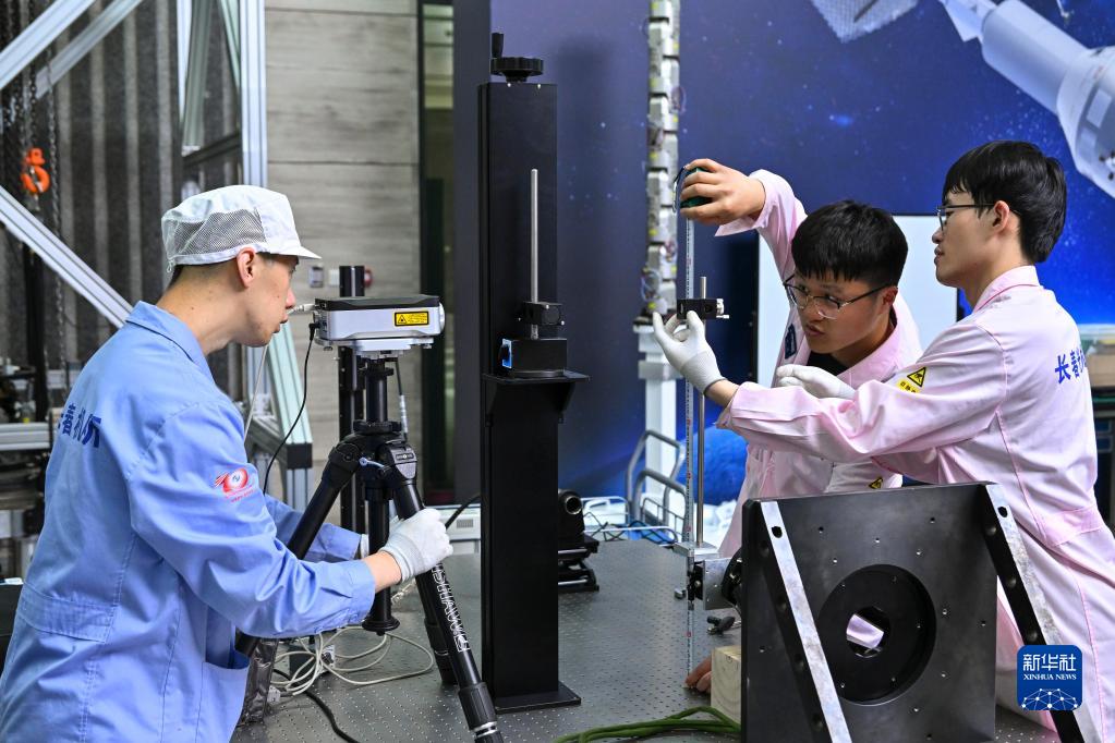 中國科學院空間光學系統在軌制造與集成重點實驗室科研人員進行實驗調試(5月25日攝)。