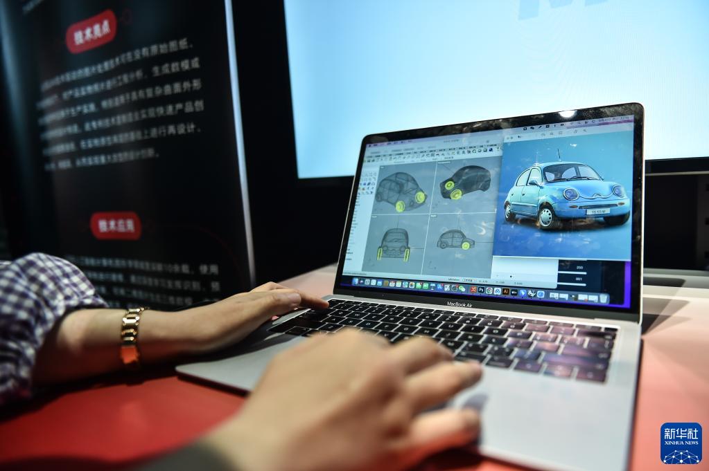 5月30日,在科幻產業新技術新產品展上,一名科技公司人員向記者展示可實現“2D生成3D”的AI自動生成軟件。