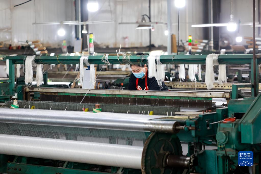 5月30日,工人在河北省唐山市豐南區王蘭莊鎮一家紡織企業生產。