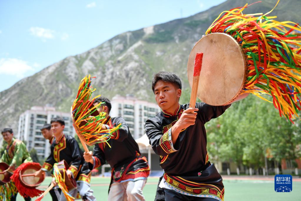5月30日,四川省汶川中學高三學生用羌族羊皮鼓舞“減壓”迎高考。