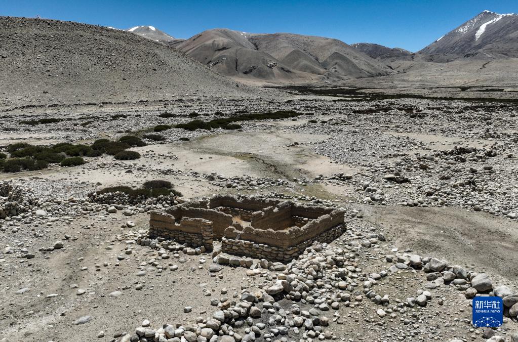 這是5月28日拍攝的典角村“一代房”的殘存(無人機照片)。房子大概四五十平米,有一個臥室,一個廚房,還有一個客廳。如今屋頂已經沒了,在風雨的侵蝕之下,只剩下殘垣斷壁。新華社記者 晉美多吉 攝
