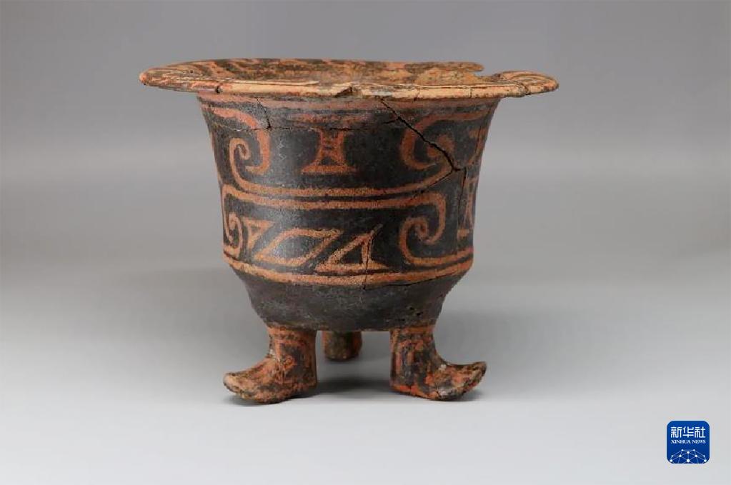 北京豐臺新宮遺址大坨頭文化墓葬M75出土的靴形足彩陶尊。